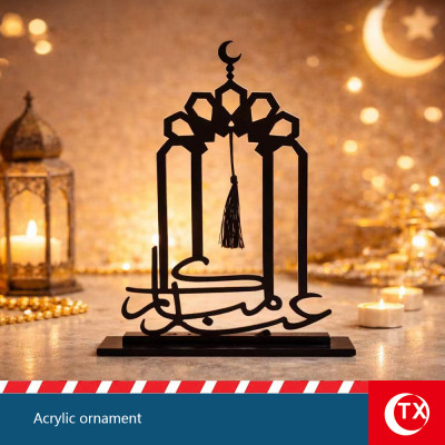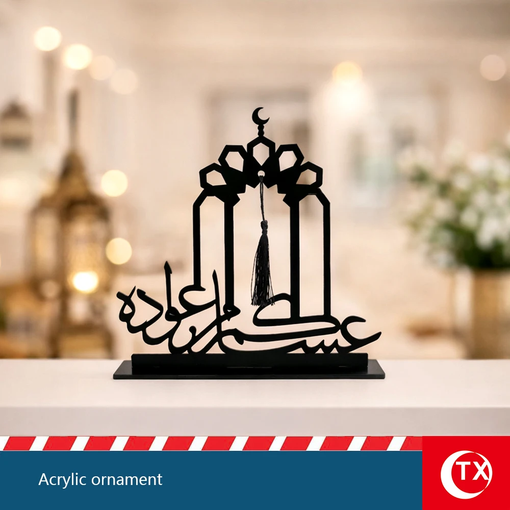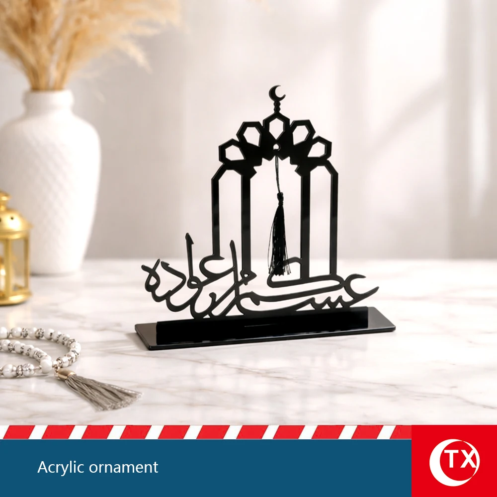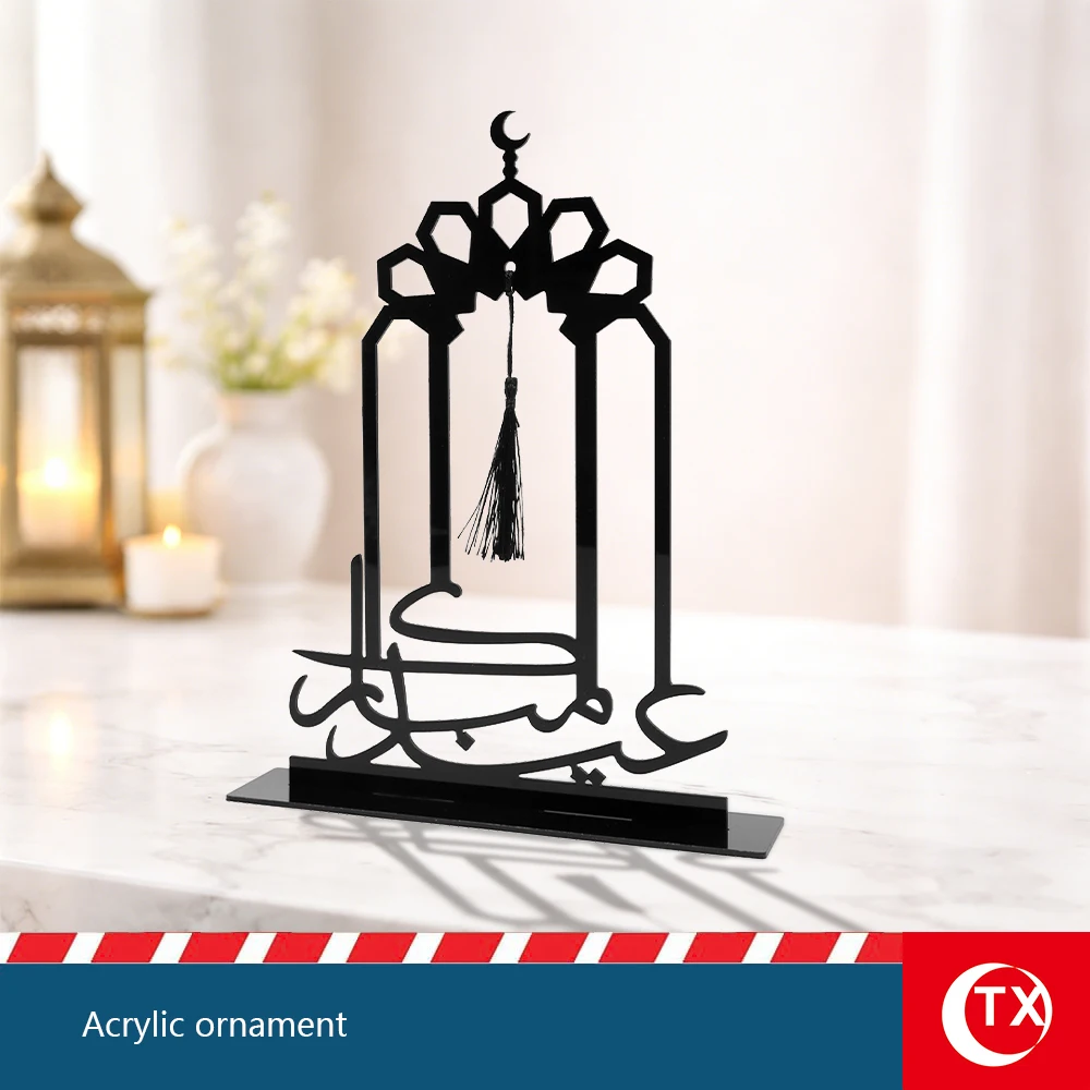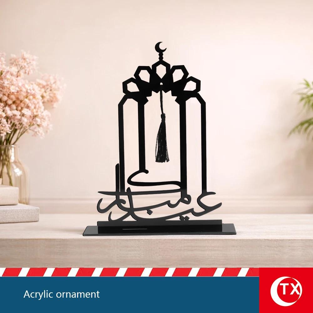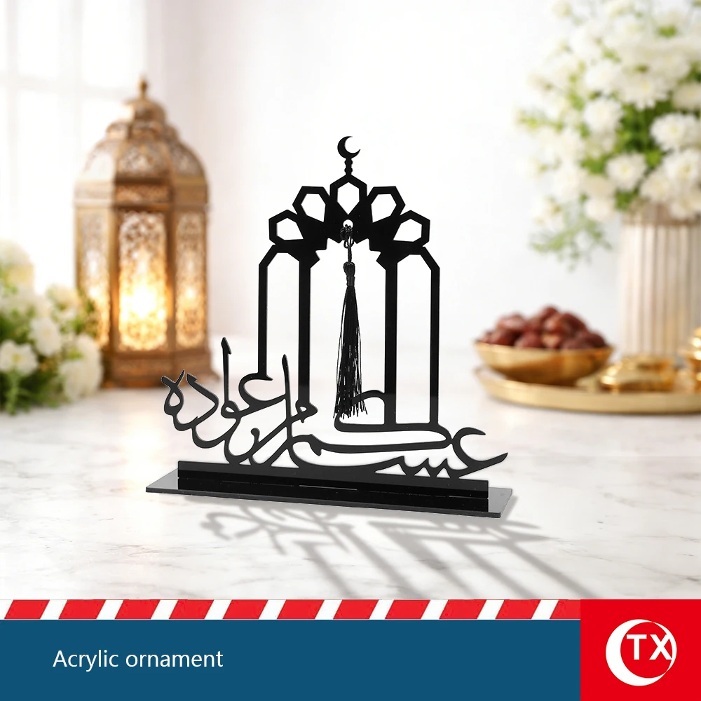 ديكور مكتبي عصري لعيد مبارك - حامل أكريليك على شكل قوس وهلال إسلامي - خط عربي لعيد الفطر/العيد الأضحى ورمضان